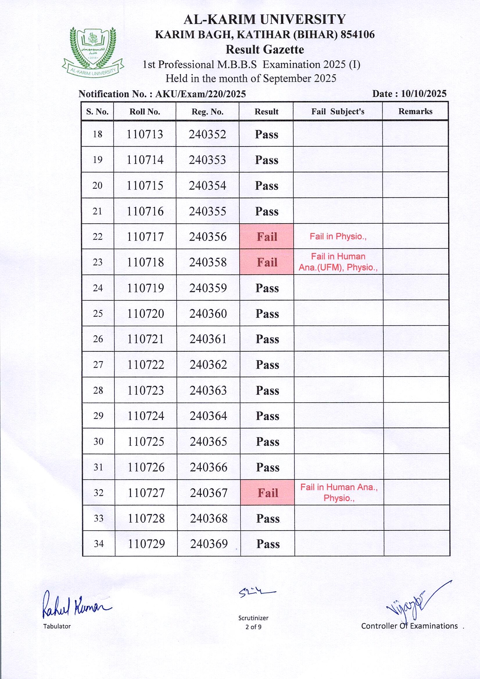 Result of 1st Professional M.B.B.S Examination 2025 (I) Page 2 of 9