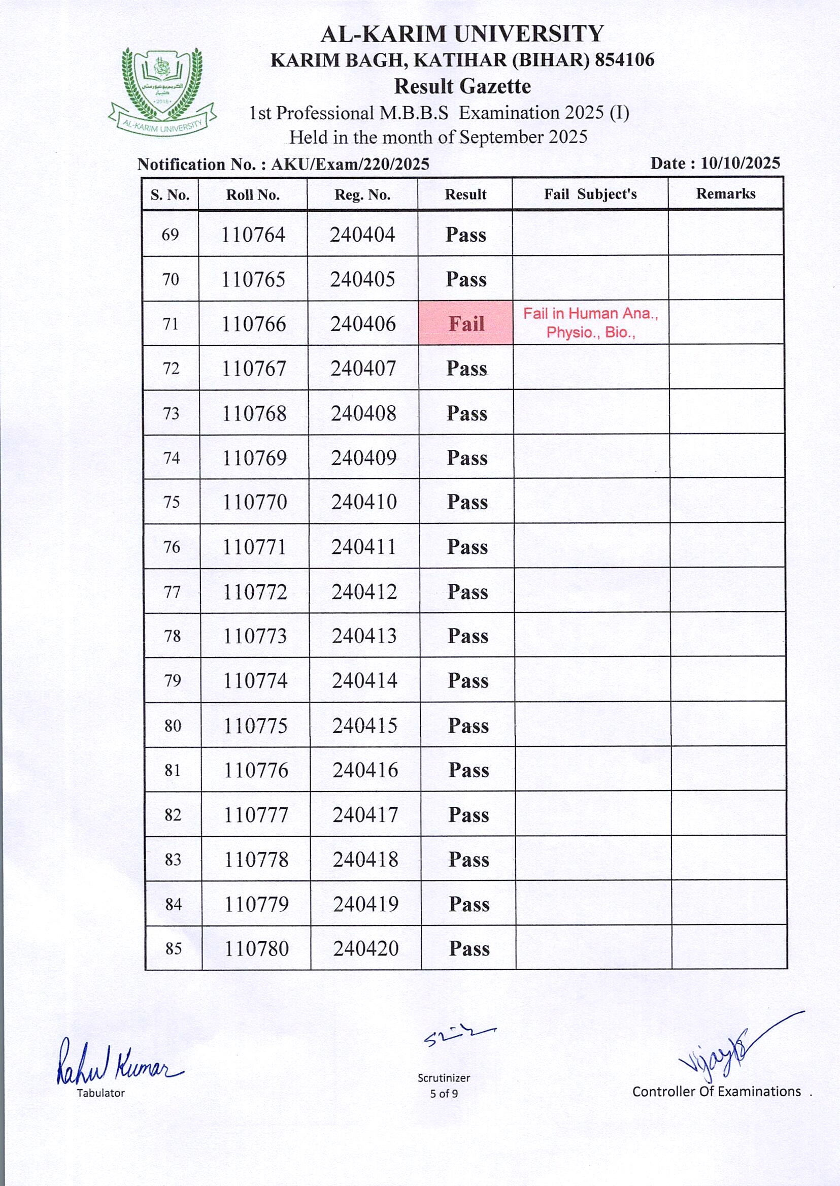 Result of 1st Professional M.B.B.S Examination 2025 (I) Page 5 of 9