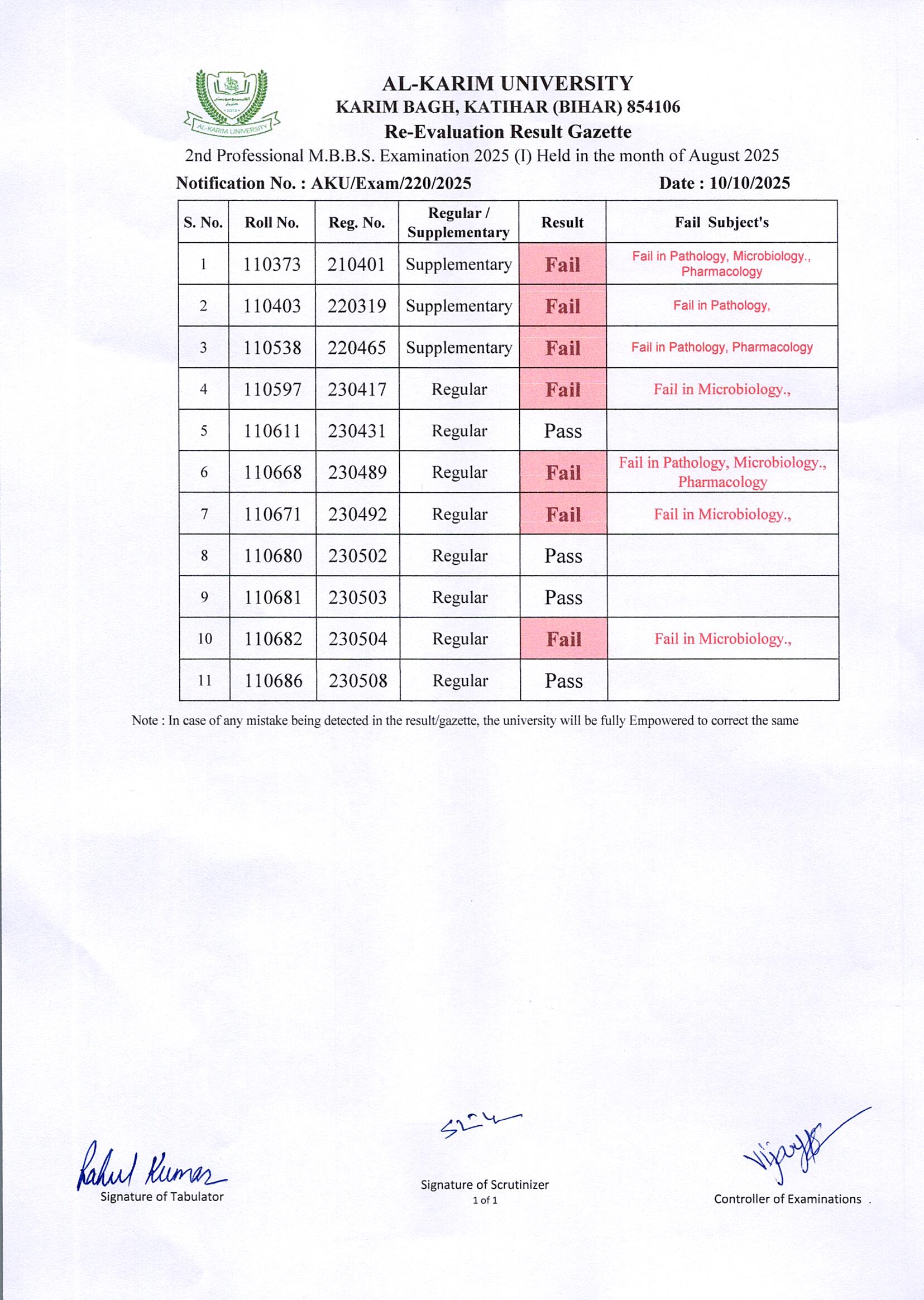 Result of 2nd Professional M.B.B.S Examination 2025 (I)