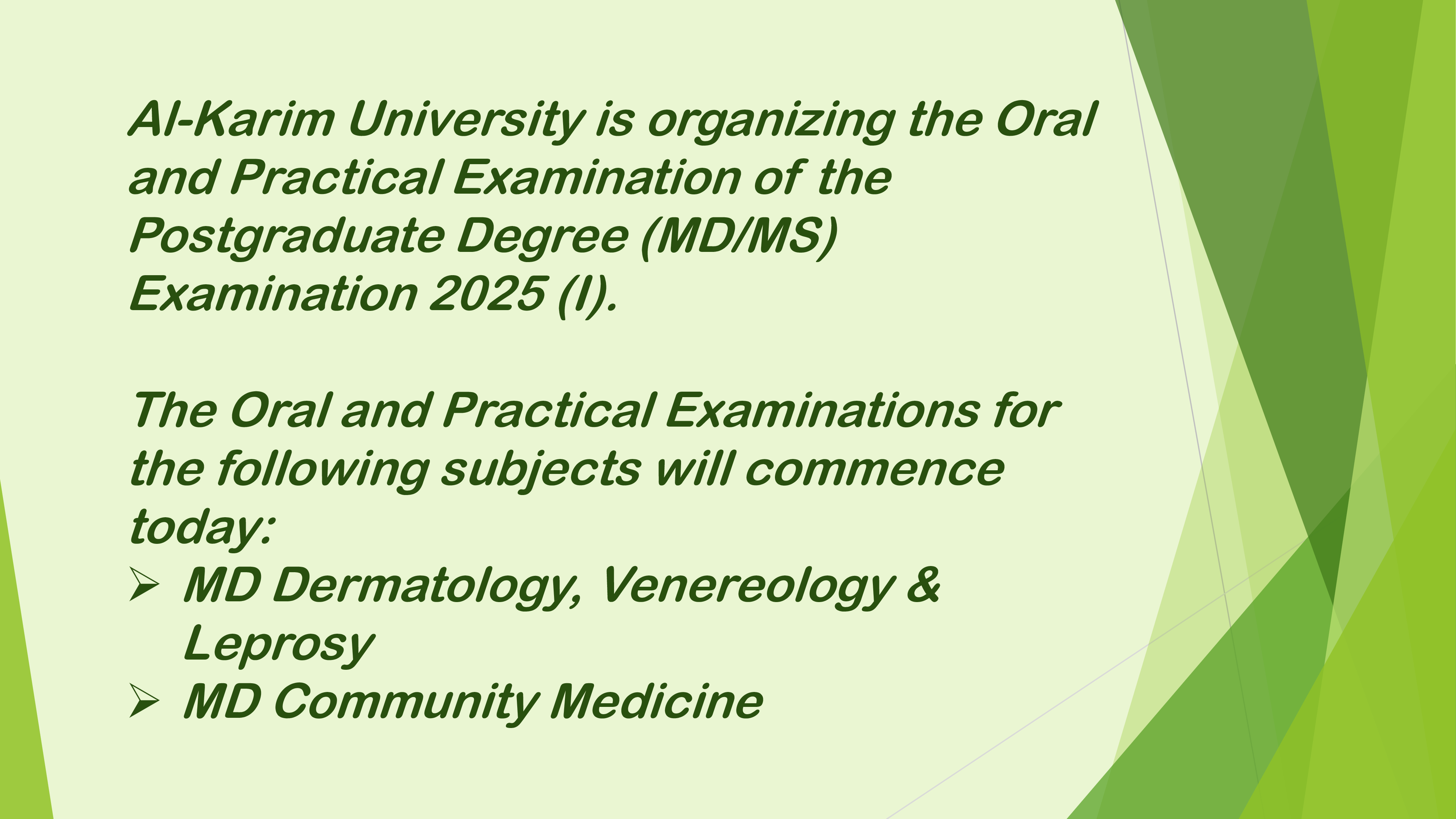 Oral and Practical Examination of the Postgraduate Degree (MD/MS) Examination 2025 (I)