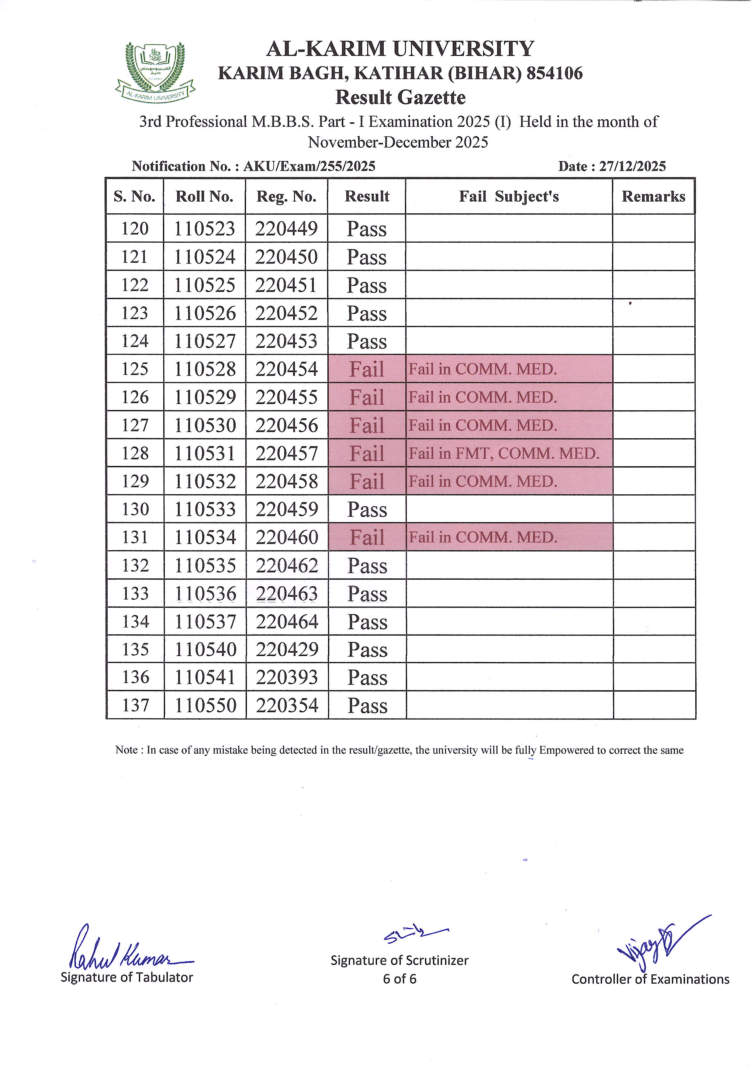 Result of 3rd Professional MBBS Part-I Examination 2025 (I) Page 6 of 6
