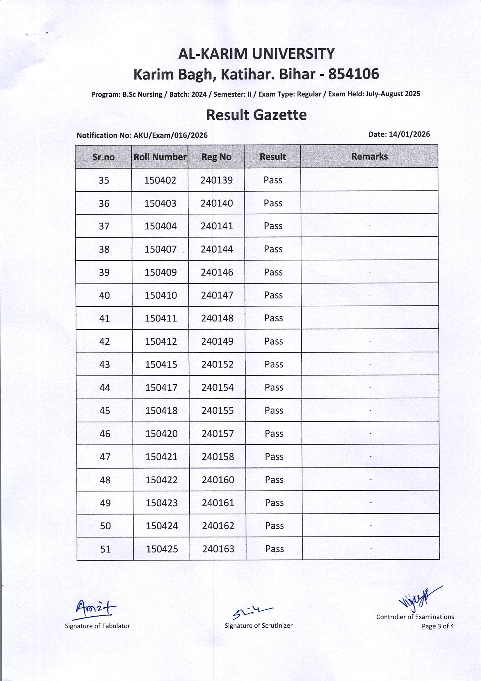 Result of B. Sc. Nursing/Batch-2024/Semester-II Regular Exam 2025 Page 3 of 4