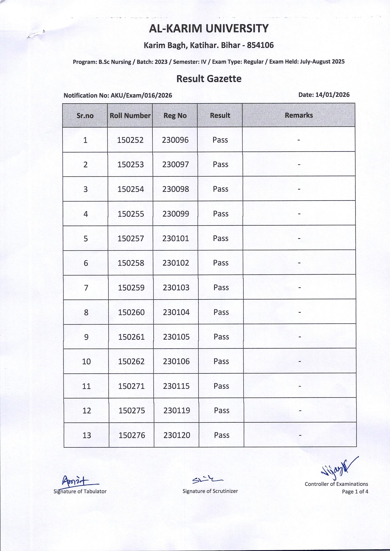 Result of B. Sc. Nursing/Batch-2023/Semester-IV Regular Exam 2025 Page 1 of 4