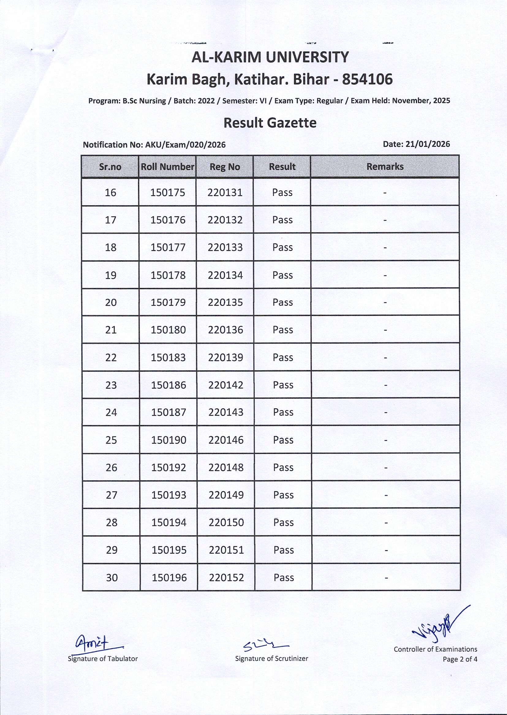 Result of B. Sc. Nursing / Batch: 2022 / Semester:VI / Regular Exam 2025 Page 2 of 4