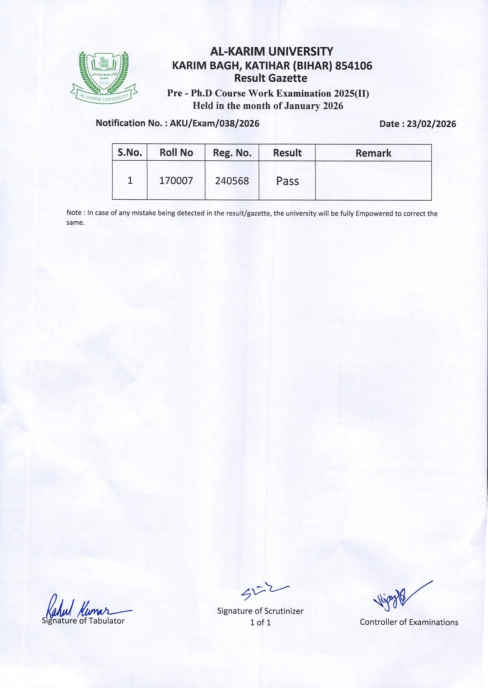 Result of Pre- Ph.D Course Work Examination 2025(II)